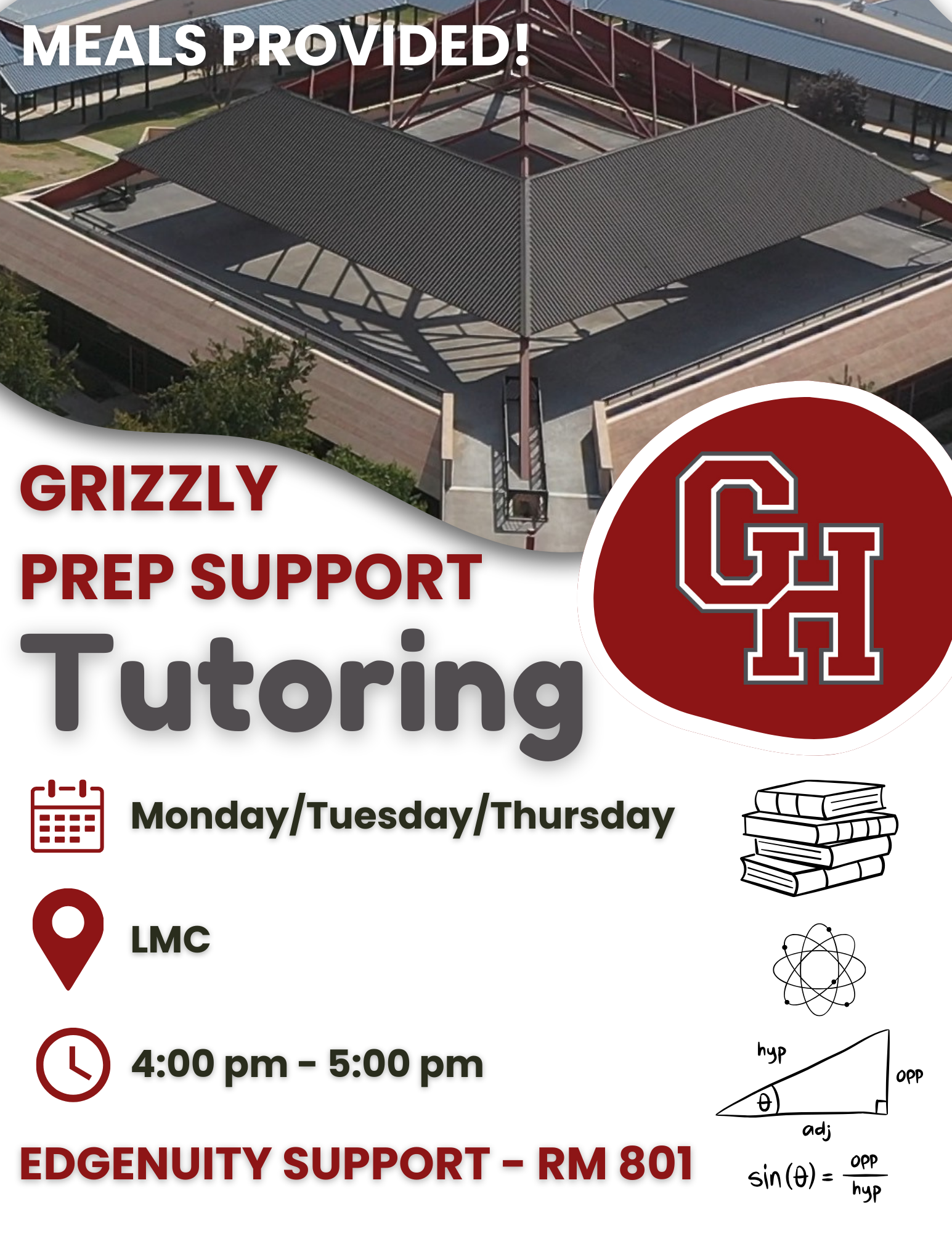 If you need to make up missed days or just want a quiet place to work on the weekend, Grizzly U has you covered. Join us on Saturdays from 8:30- 12:30 to get caught up or get ahead.